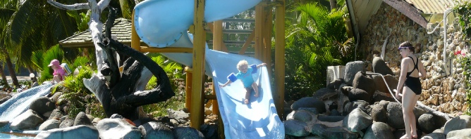 Kids Playing on the Giant Water jumping Castle “Plantation Island”