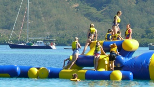 Kids Playing on the Giant Water jumping Castle “Plantation Island”